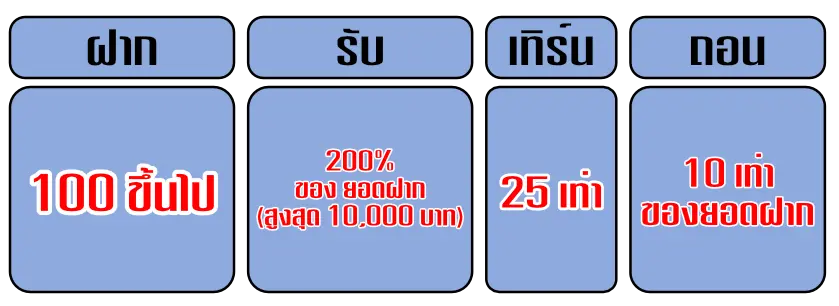 👉ฝากขั้นต่ำ 100 บาท รับฟรี 200% รับโบนัสสูงสุด 10,000 บาท